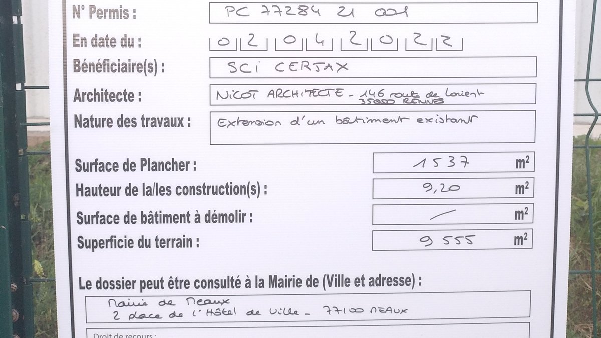 CONSTAT D'AFFICHAGE D'UN PERMIS OU D'UNE AUTORISATION PREALABLE EN SEINE ET MARNE